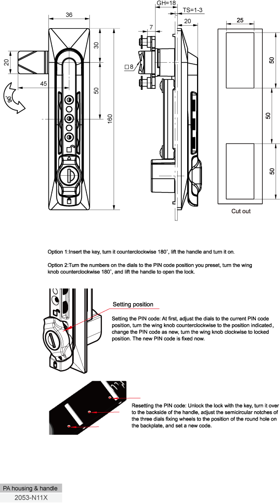 | Name: | Swing handle latch with combination lock 2053,PA,key locking,Standard lock plug |