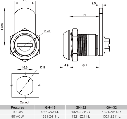 | Name: | Standard size cam lock 1321,zinc alloy,key locking,cam without stopper |