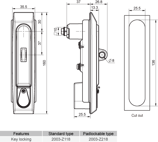 | Name: | Swing handle latch 2003,zinc alloy,key locking/non-locking,profile half lock cylinder with pick-resistant cover,padlockable hasp option |