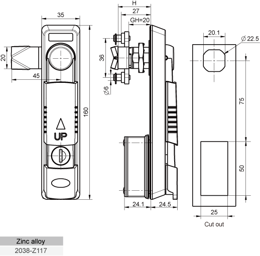 Name:Swing handle latch 2038,zinc alloy,key locking,Euro profile half lock cylinder,sliding dust cover