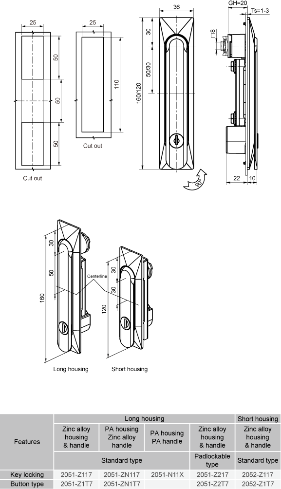 | Name: | Swing handle latch 2051/2052,zinc alloy/PA,key locking/non-locking,Standard lock plug/push button,padlockable hasp option |