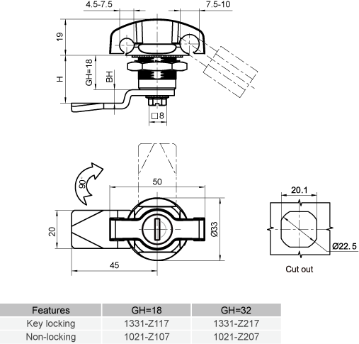 | Name: | Quarter turn latch 1321 ,key locking,padlockable wing knob,zinc alloy,cam without stopper |